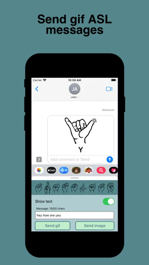 Create image or gif message using ASL hand signs. Include or exclude test with your messages.