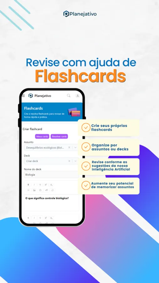 Flashcards (Crie seus próprios flashcards para revisar rapidamente os assuntos estudados).