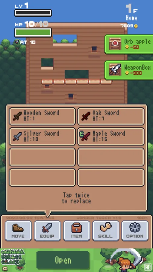 Every time you kill a monster, it drops various swords as weapons. These swords have different attack power and characteristics, so it's fun to collect them, and you can sell the swords you don't need or use them as temporary power boosts during quests.