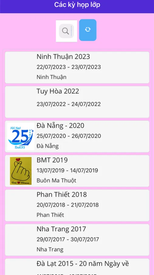 Lưu thông tin về các kỳ họp lớp, link lưu trữ album ảnh.
