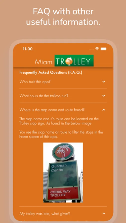 Note: This app for the City of Miami trolleys (orange and green), and not for Miami Beach trolleys (blue). Download the companion app "Miami Beach Trolley Tracker" to track Miami Beach trolleys.