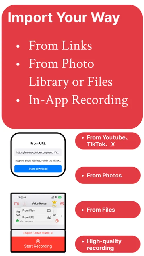 Tired of struggling to understand, remember, or keep up with audio & video content? RecAI is here! This powerful speech-to-text and translation app makes it effortless to extract content from any audio or video, whether it's from YouTube, TikTok, or Bilibili!