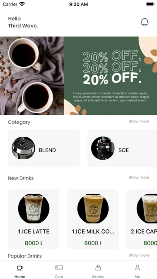Third Wave Coffee is a mobile ordering app for a specialty coffee shop known for its artisanal coffee beans and toast. The shop is focused on craft coffee and high-quality baked goods, embracing the "third wave" of coffee.
