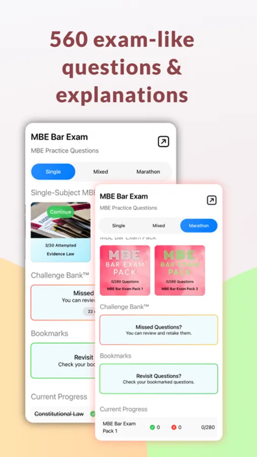 - Practice questions: The app provides access to 560 MBE practice questions, which can help students assess their knowledge and identify areas where they need improvement.