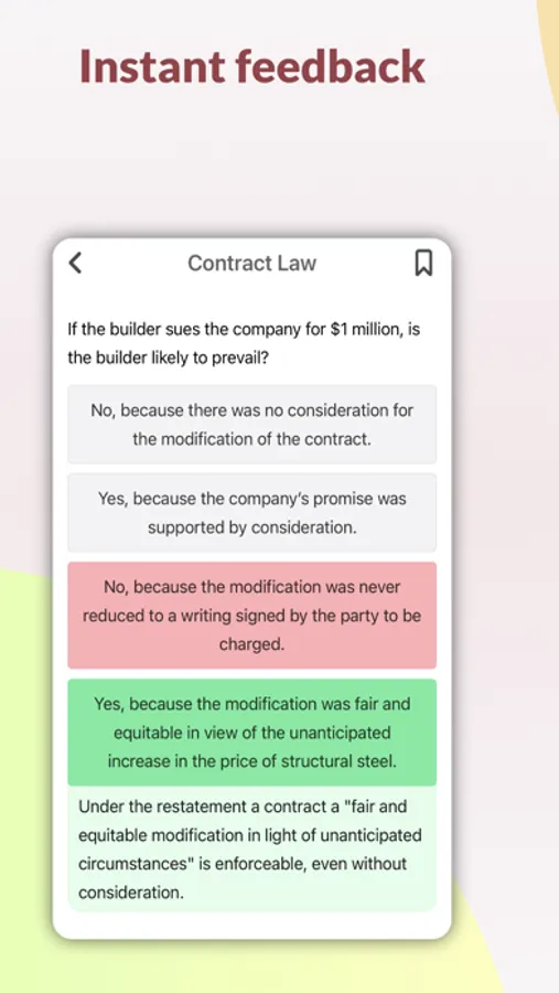 One of the most important features of our app for the MBE is the quality of its practice questions. The questions should be accurate and up-to-date, and they should cover all of the topics that are tested on the MBE. Additionally, the questions should be challenging enough to provide a realistic test-taking experience.