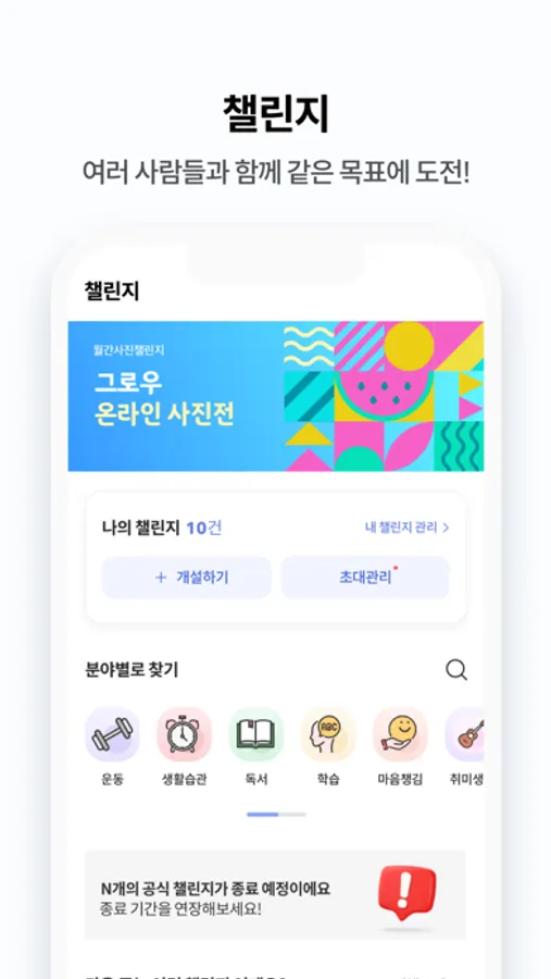 : 친구나 동료와 함께, 또는 나혼자 챌린지를 개설하고 도전하는 것도 가능