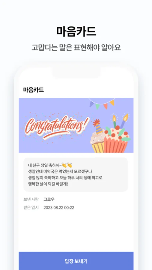 : 감사, 축하, 응원 등 다양한 마음을 담을 수 있는 카드스킨 제공