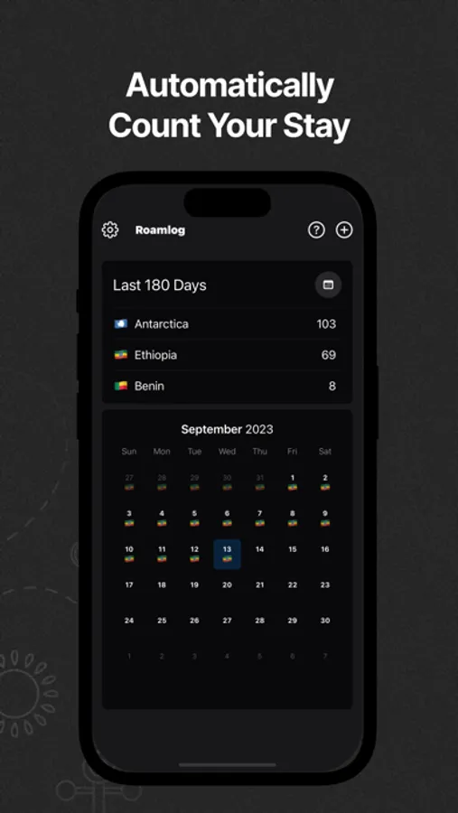 Welcome to Roamlog, automatic visit counter for nomads and travelers. Our app helps you count days by country automatically and stay tax residency and visa compliant.