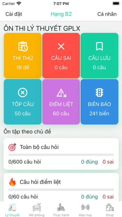 * Tính năng chính ôn thi Lý thuyết GPLX