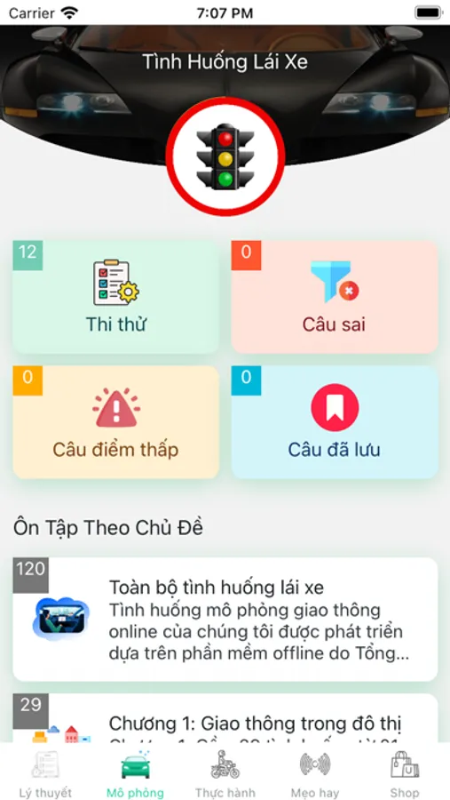 * Hỗ trợ ôn thi tình huống mô phỏng lái xe ô tô ngay trong cùng 1 ứng dụng.