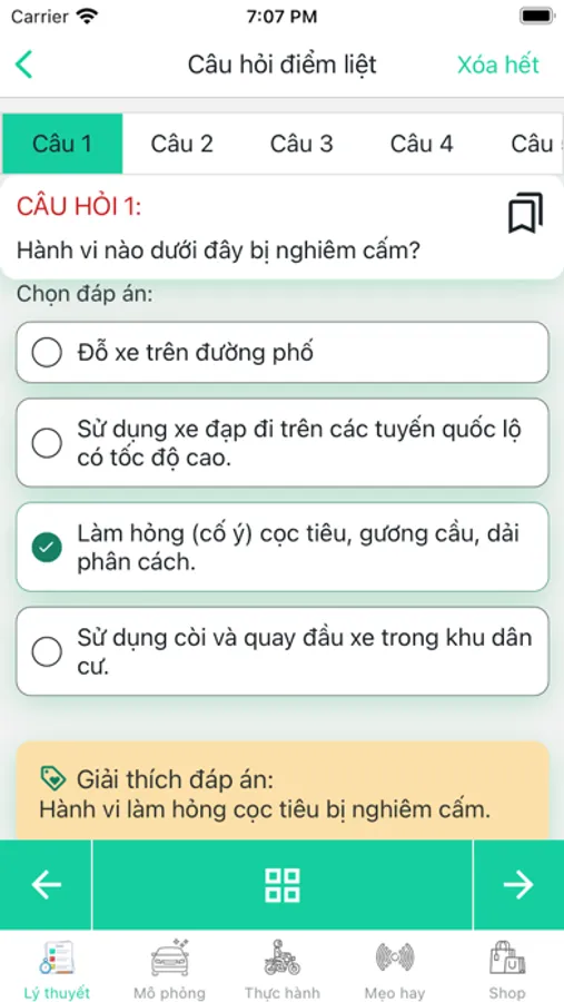- Học và kiểm tra kết quả tức thì, giải thích kết quả chi tiết và mẹo làm bài cho từng câu hỏi, mẹo ghi nhớ đáp án từng câu hỏi