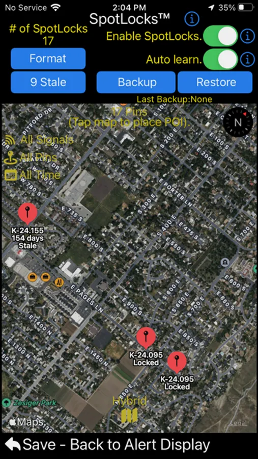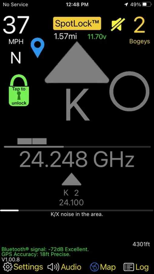 • 'K & X falses in area' meter shows you how many possible false alerts exist in the area you are travelling based on the accumulated SpotLock data™.