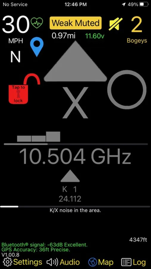 • HUD displays the priority alert's band, signal strength, frequency, & direction. The HUD is color coded between real threats & muted false signals.