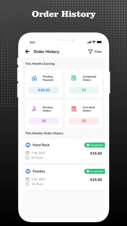 -View delivery history with all completed, cancelled, pending and running delivery requests