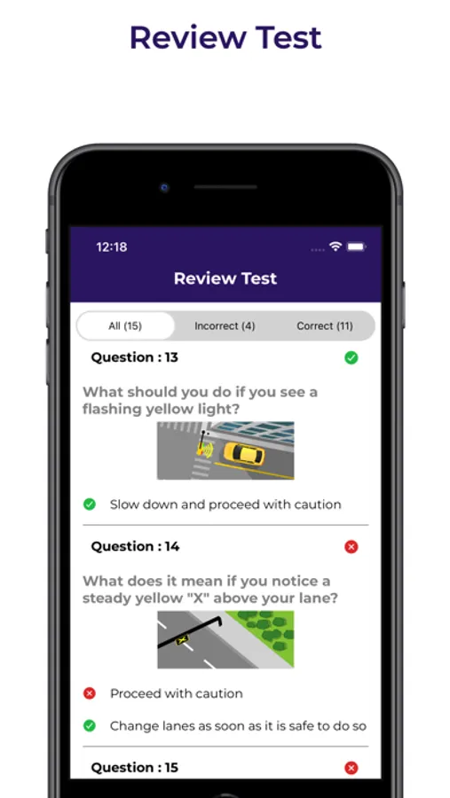 Instantly receive test scores and review answers to assess performance.