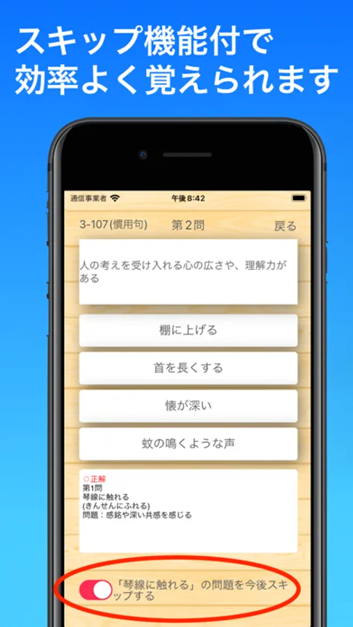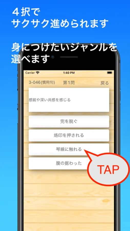日常でよく使う言葉、ビジネスでよく使う言葉、慣用句、四字熟語、ことわざとジャンルわけしています。自分が学習したいものを選択することが可能です。語彙力を楽しみながら向上させ、自信を持って表現できるようになりましょう。