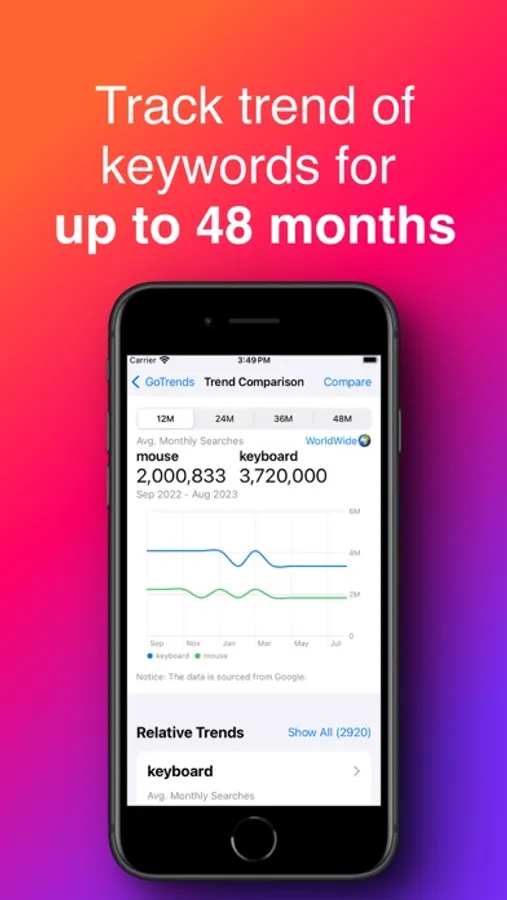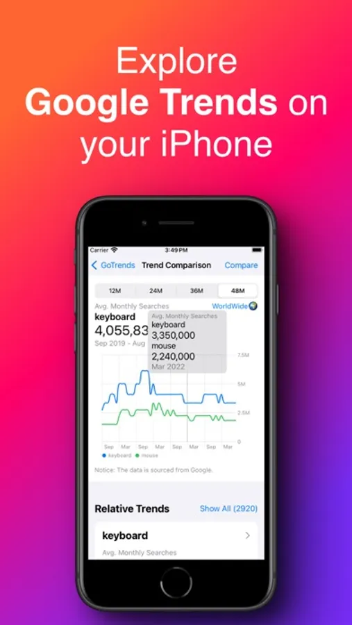 1. GoTrends provides a convenient user experience on the iPhone, while Google Trends does not have a dedicated mobile version. Using GoTrends on the iPhone will result in a better experience.