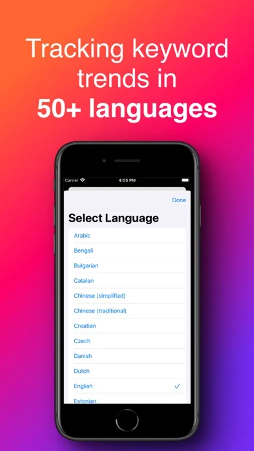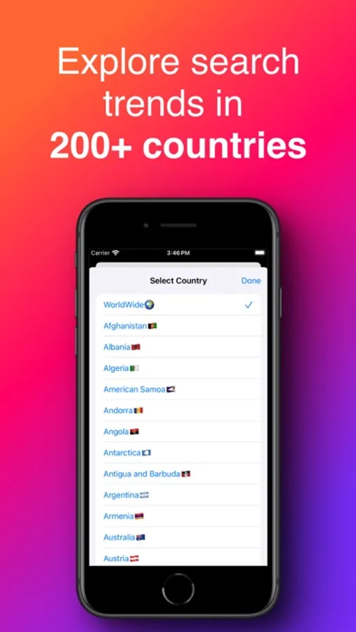 * Support track keywords in over 200 countries and more than 50 languages. For detailed supported countries and languages infomation, watch our user document: https://www.notion.so/orzliao/GoTrends-User-Document-4a741e3a318146a3b5e6eb1a607ed180