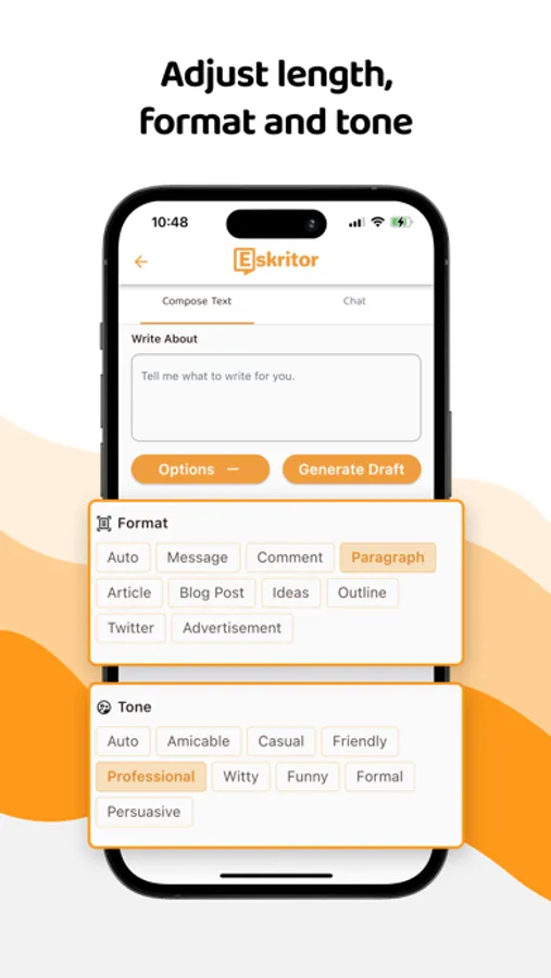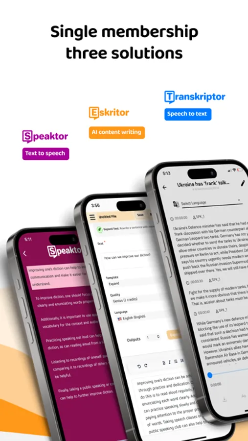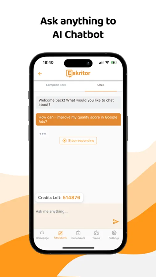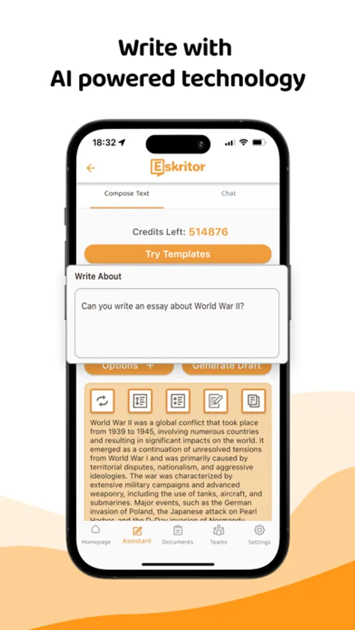Eskritor is content writing and text generation app, where Artificial Intelligence writing technology meets unparalleled convenience. Experience AI Writer solutions, designed to enhance your content generation. Looking to generate text that resonates with your audience? Seeking to write essays that impress and inform? AI Writing app offers 90 minutes of free credits. So, you can test the content generator and AI Chatbot freely.