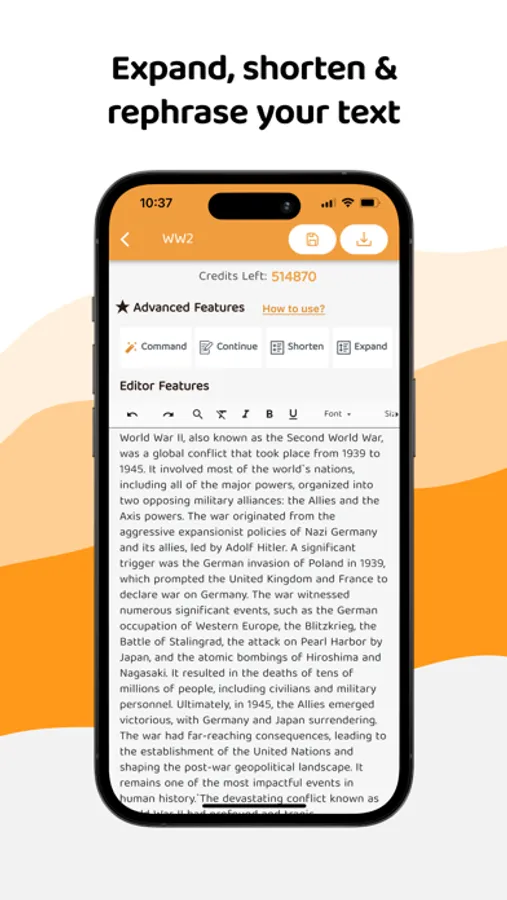 Content Creation & Refinement: Summarize text with our AI text summarization tool or extend it using our automated text generation App. Rephrase text and paraphrase text with our AI text rephraser and content rewriting assistant.
