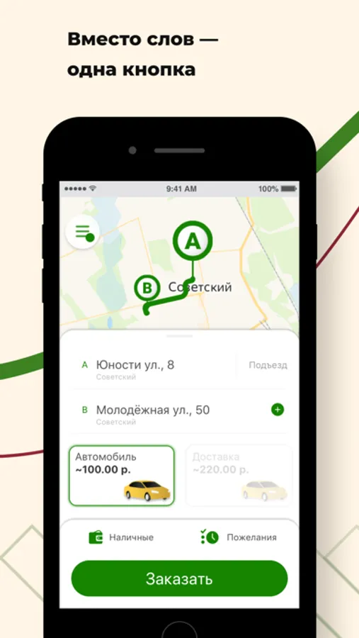 Закажите Prestige — Taxi в городах Советский, Югорск через приложение. Это в 3 раза быстрее, чем по телефону! Между желанием доехать до нужного места и поиском автомобиля — пара секунд.
