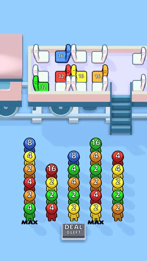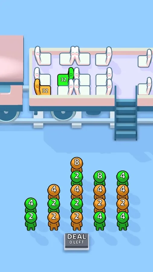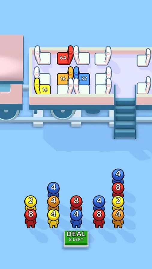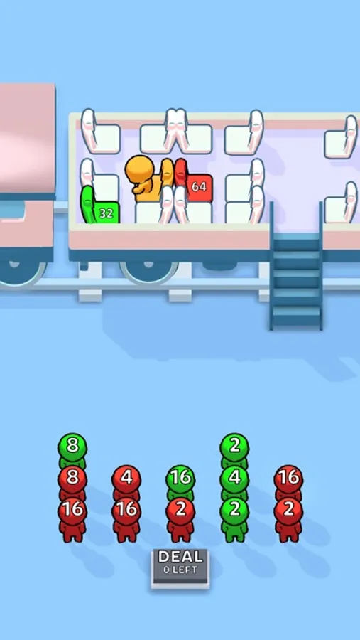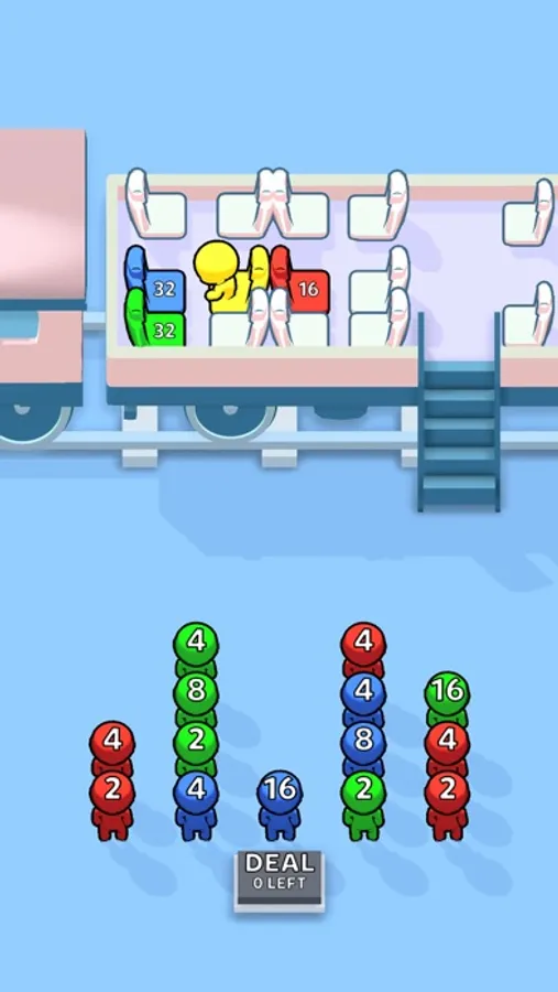 Simple strategic fun puzzle. Merge stickmen, fill the seats and travel by train.