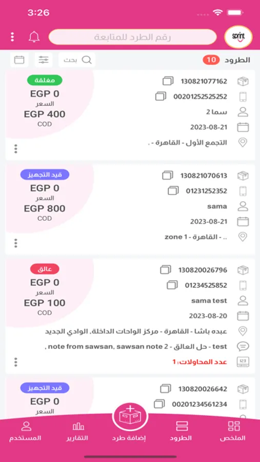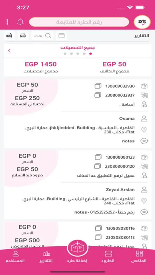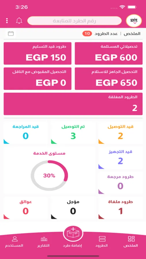 يتيح التطبيق لزبائن الشركة إدارة ومتابعة الطرود الخاصة بهم من لحظة اضافتها على النظام ولغاية تسليمها، بالإضافة لإدارة ومتابعة التحصيلات المالية وحالاتها لتسهيل متابعتها مع الشركة.