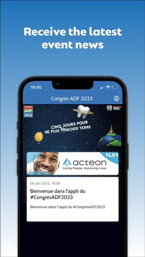 "L’application officielle du Congrès ADF 2023 organisé par l’Association dentaire française du mardi 28 novembre au samedi 2 décembre 2023 au Palais des Congrès de Paris.