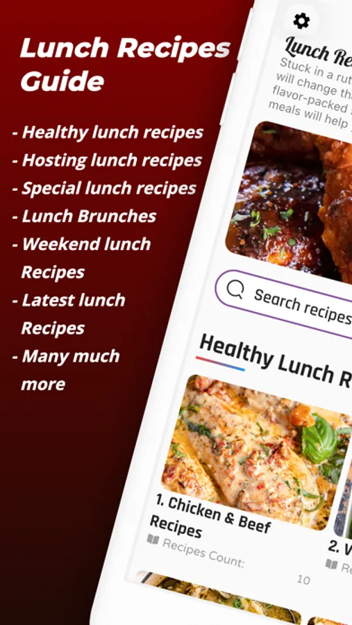 Our lunch recipes app has diet plans with your favorite lunch box ideas. We pay attention to give a lunch menu with a healthy meal plan to keep you healthy and fit. These free cooking recipes include keto, low carb, vegan, Atkins, zone, and raw food diets. These healthy lunch recipes are combined in the lunch apps.