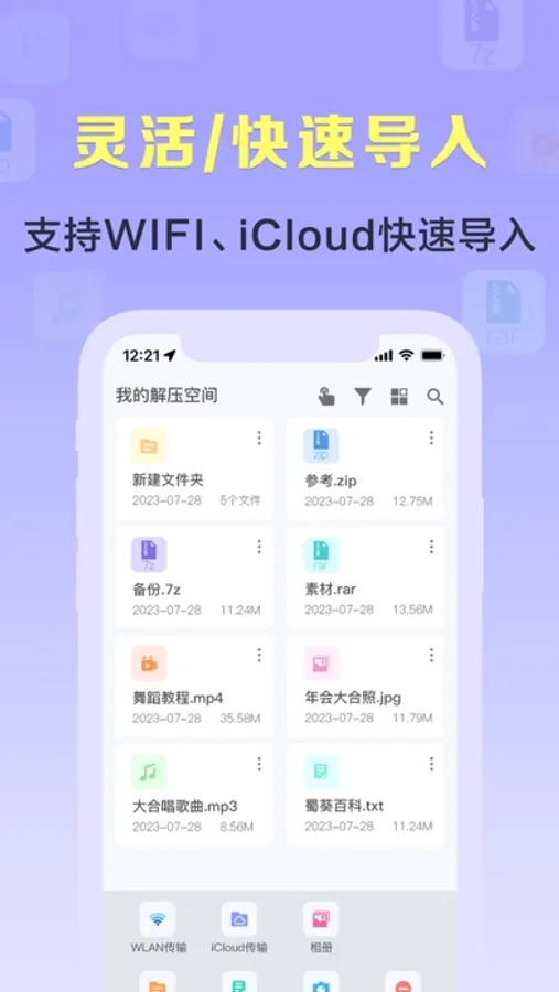 4.支持WLAN、iCloud、相册等方式导入文件;
