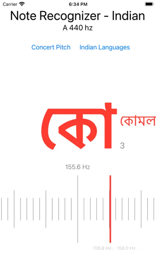 Note Recognizer Indian - To use this app to easily detect the pitch of any sound or note! in Indian launguages. The note recognizer indicates whether the note is too high, too low, or in tune.