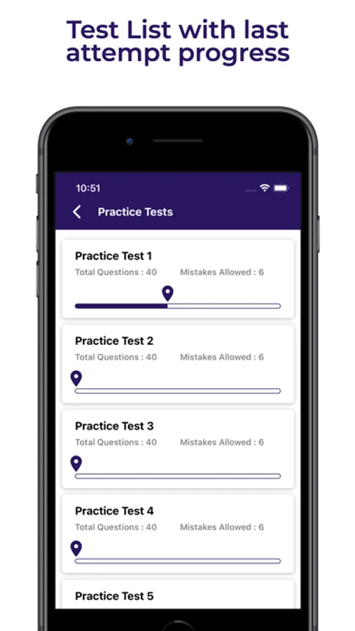 Users can track their progress to focus their studying on the areas. Tracking progress is made effortless as the app allows users to monitor completed practice tests, identify areas requiring more attention, and measure overall improvement.