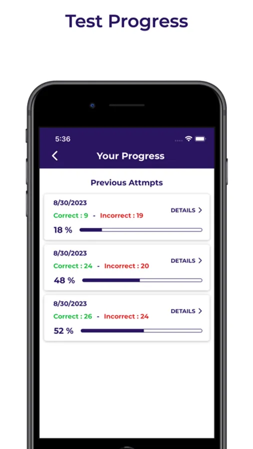 Users can track their progress to focus their studying on the areas. Tracking progress is made effortless as the app allows users to monitor completed practice tests, identify areas requiring more attention, and measure overall improvement.