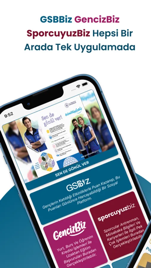 Gençlik ve Spor Bakanlığı tarafından hayata geçirilen GSBBiz projesi içerisinde barındırdığı ‘Avantajlar’, ‘Puan Kazanma’, ‘Puan Harcama’, ‘Etkinlik Kodu(QR) Okuma’ ve ‘Anket’ modülleri ile genç, sporcu ve gönüllü bireylerimizin Bakanlık faaliyetleri hakkında farkındalığını artırma amacıyla geliştirilmektedir. Kullanıcılar Bakanlık etkinliklerine katılarak, anketleri doldurarak ve/veya sahip oldukları sportif belgeler ve katıldıkları müsabakalar ile kazanabilecekleri puanları GSBBiz içerisinde bulunan ürün ve hizmetlere ücretsiz sahip olabilmekte ve ‘Avantajlar’ modülü ile de çeşitli indirimlerden faydalanabilmektedirler. Kullanıcılar, Tesis, Gençlik Merkezi gibi alanlara giriş işlemlerini dijital bir arayüz sayesinde sağlayabilirken, bütün bu işlemlerden de puanlar kazanabilmektedirler.