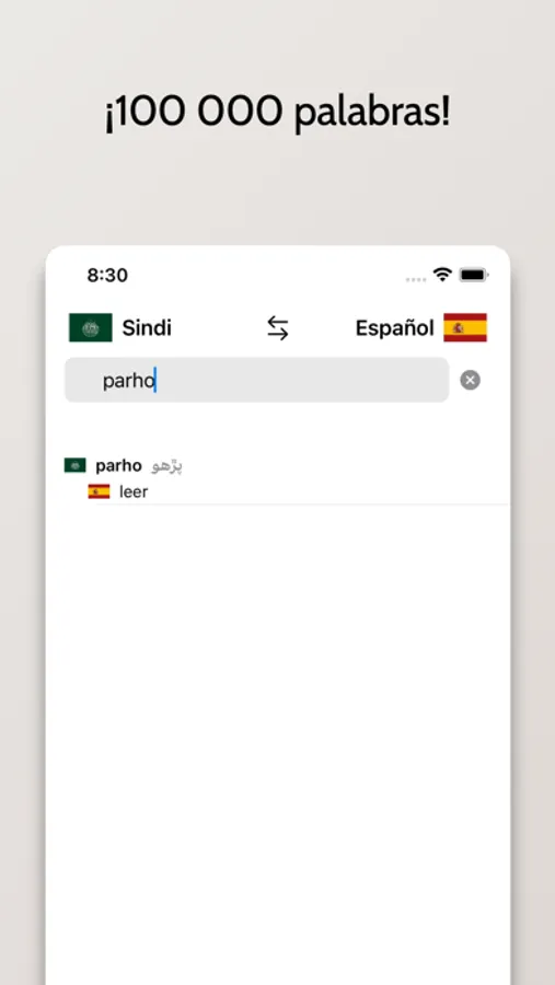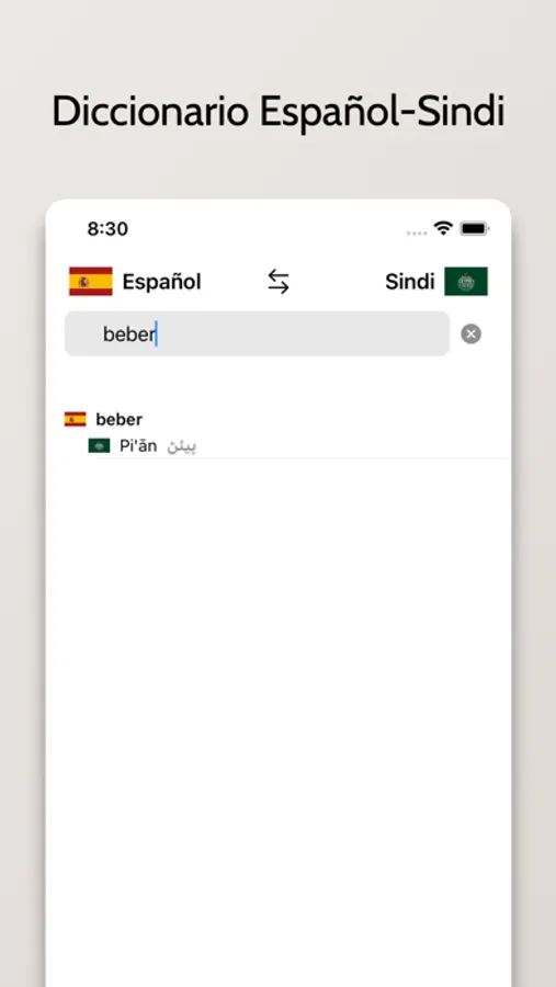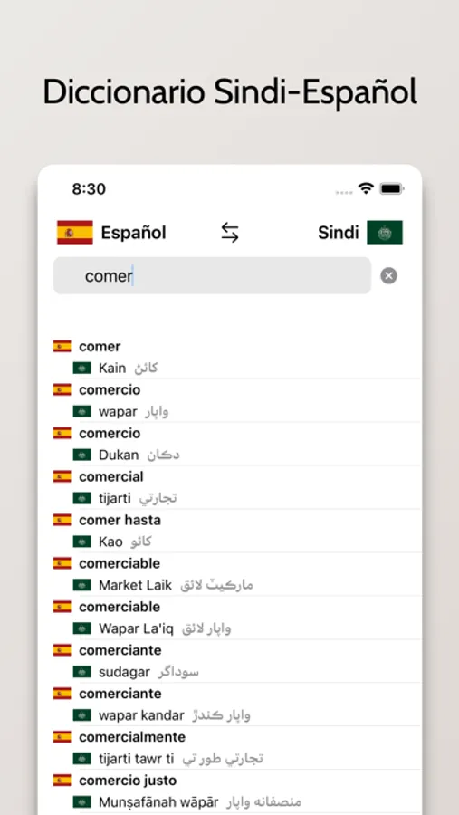 - Posibilidad de buscar a partir de palabras en Español o Sindi