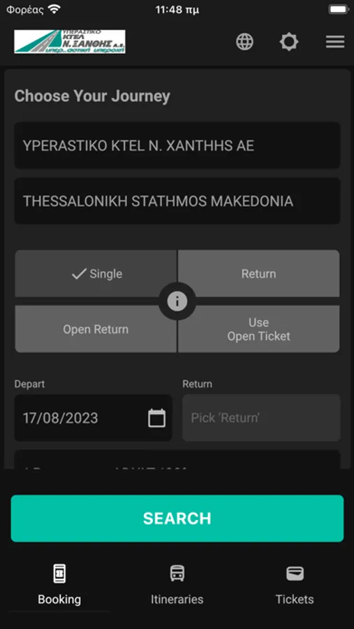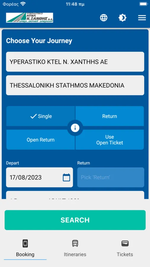 Application for issuing tickets and informing the public about the arrivals and departures of long-distance bus services