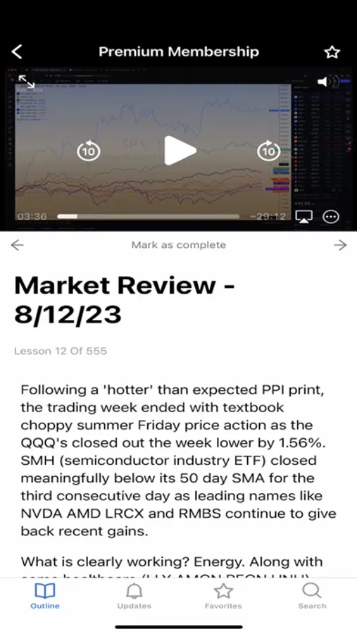• Daily Market Review Videos: Top-Down analysis of the current trading environment with a focus on sector / industry / stock relative strength
