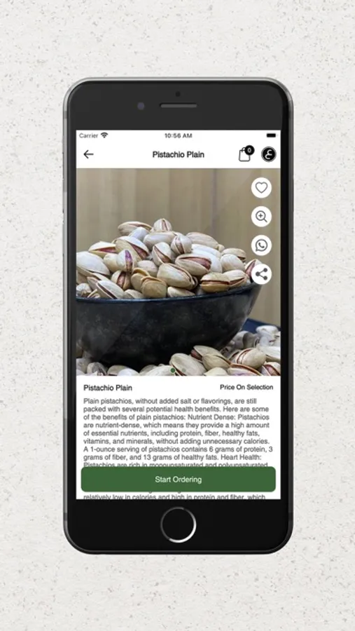 في تطبيق I Nuts حرصنا على توفير شتى ما تحتاجه من حلويات ومكسرات لذلك حرصنا على أن يكون المتجر الإلكتروني الخاص بنا يعرض منتجاتنا بأسهل الطرق. ستجد واجهة المستخدم الخاصة بنا سلسة وسهلة التعامل معها حيث أن كل ما تحتاج لفعله هو: فتح التطبيق ، تصفح تصميماتنا المميزة، اختيارما يلبي طلبك ادراجه ضمن مشترياتك في سلة المنتجات من ثم إتمام معلومات الشراء الخاصة بك وأخيرا نصل الى تحديد الية الاستلام وطريقة الدفع التي تناسبك.