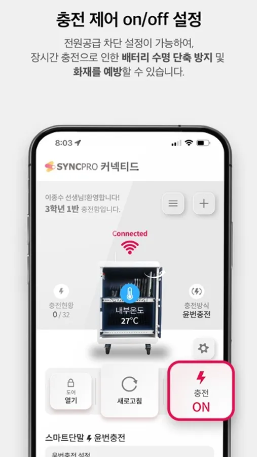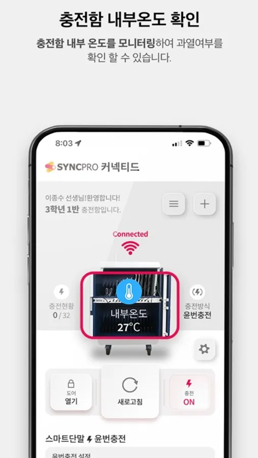 - 안전을 위한 충전보관함 내부온도 확인 및 발열경고