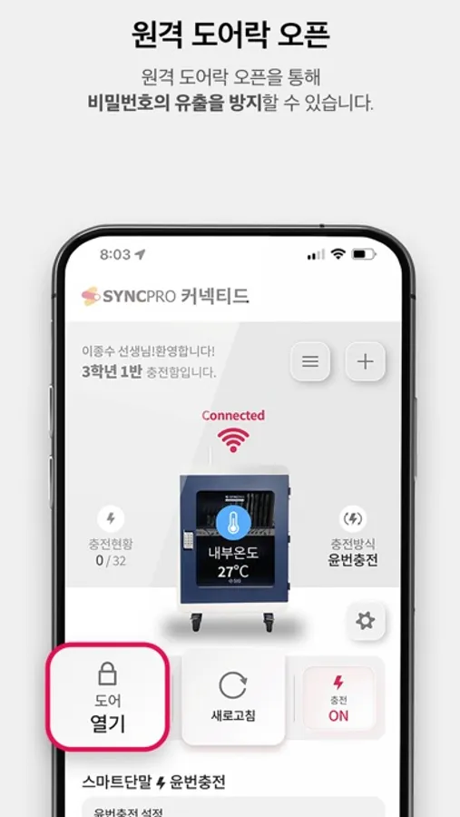 국내 유일의 IoT 충전보관함 싱크프로를 Wi-Fi 무선 통신을 통해 원격으로 모니터링 및 제어 합니다.