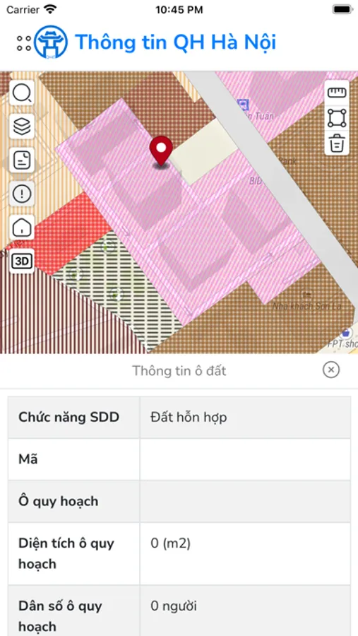 Ứng dụng hỗ trợ cán bộ nhân viên và người dân tra cứu thông tin quy hoạch trên địa bàn TP Hà Nội. Các tính năng chính: