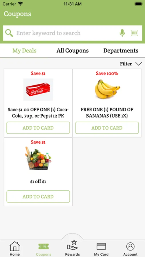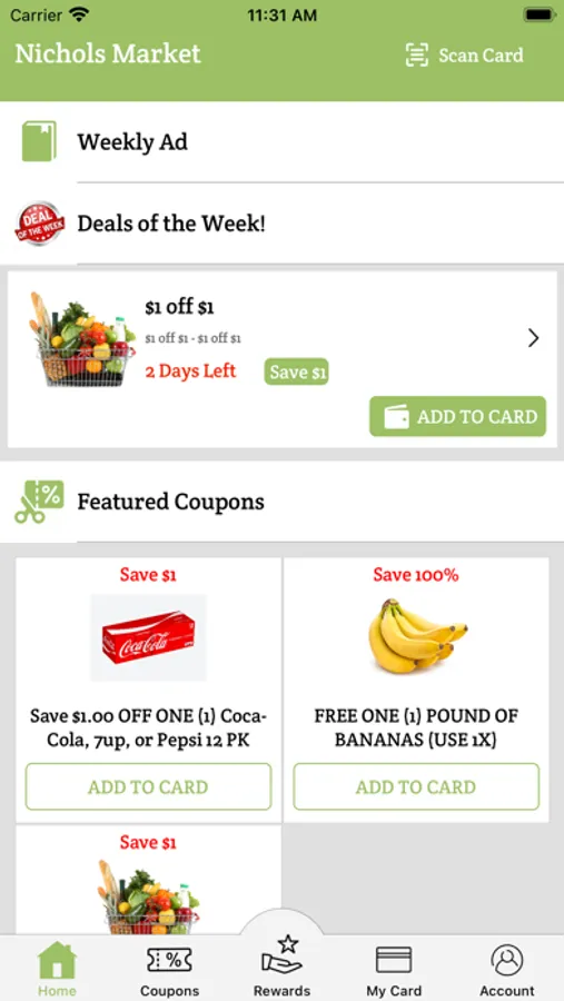 Nichols Market OK is an independent grocer operating out of Eufaula, Oklahoma. This app allows loyal customers to receive savings every time they shop! Simply browse the coupons available, “Add to Card” the one’s you want, and scan your phone at checkout.