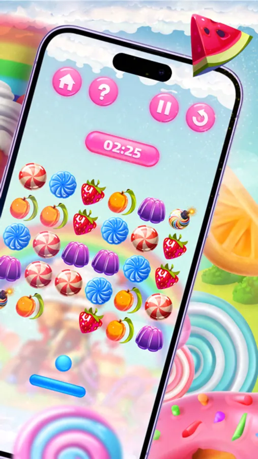 Sweet Land of Bonanzas is a fun and captivating iOS game that will transport you to a world of sweets and fruity delights! Become a master at knocking down candy and fruit-shaped figures using your agility and reflexes. Swipe your finger across the screen to aim precisely and take out targets, earning maximum points. With levels becoming increasingly challenging, you'll need strategy and quick reactions to overcome all the trials in Sweet Land of Bonanzas. Various bonuses and power-ups will assist you in tackling tasks and reaching new heights. Join this exciting adventure in Sweet Land of Bonanzas and showcase your skills in knocking down sweet figures!