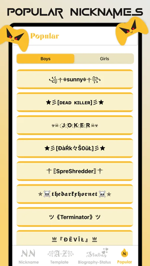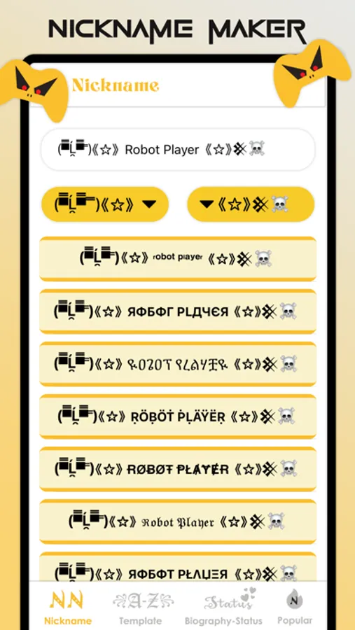 Stylish Nicknames on Demand: Transform your name into an enchanting work of art. Choose from a vast collection of beautifully designed nicknames that reflect your individuality. Impress your friends, followers, and fellow gamers with beautiful names.
