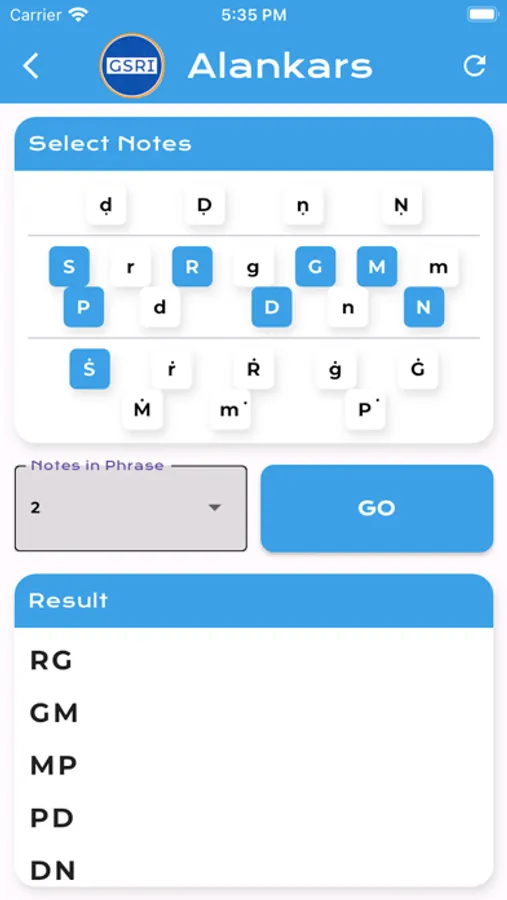 Alankars tool can be used to build and practice alankars based on the notes selected.