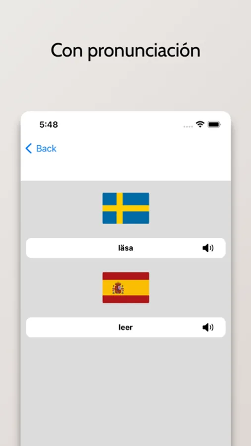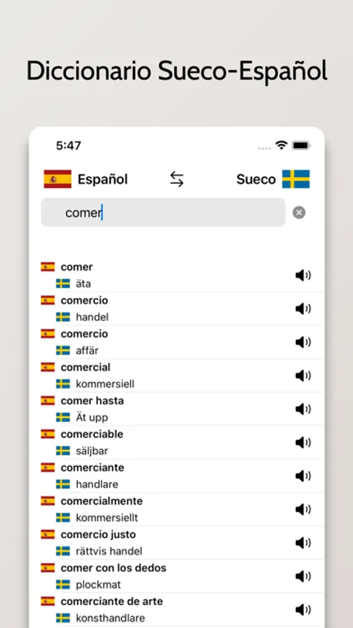 - Pronuncie la palabra en Sueco en la lista de búsqueda