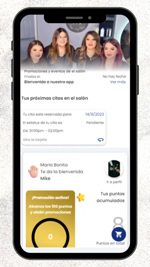 Bienvenida a nuestra app, ahora además de acudir a nuestro salón, ahora puedes realizar tus citas en nuestra app.