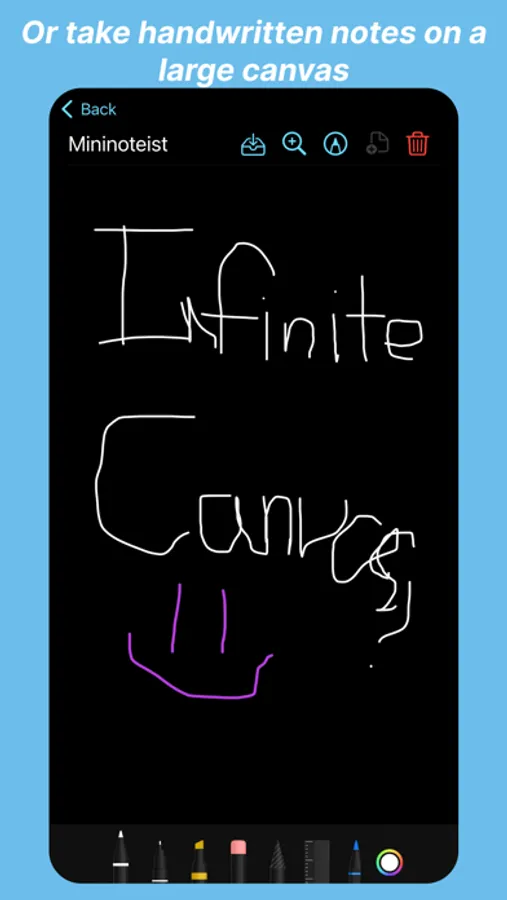 - Two options when it comes to handwritten notes: Canvas and Notebook. Canvas is a gigantic page and Notebook is a vertically paged option with as many pages as you could need or want
