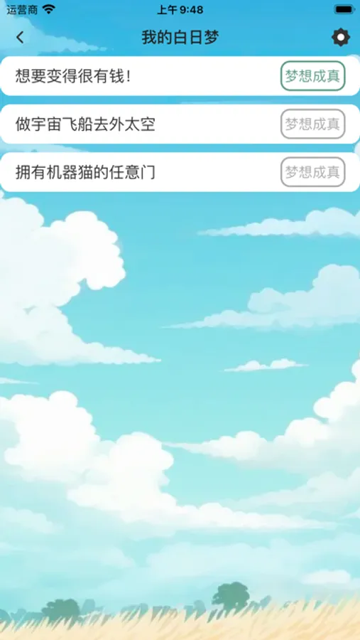 白日梦还是要有的,万一有天真的实现了呢?来这里做白日梦吧~把梦挂在云朵上,随风飘向远方。