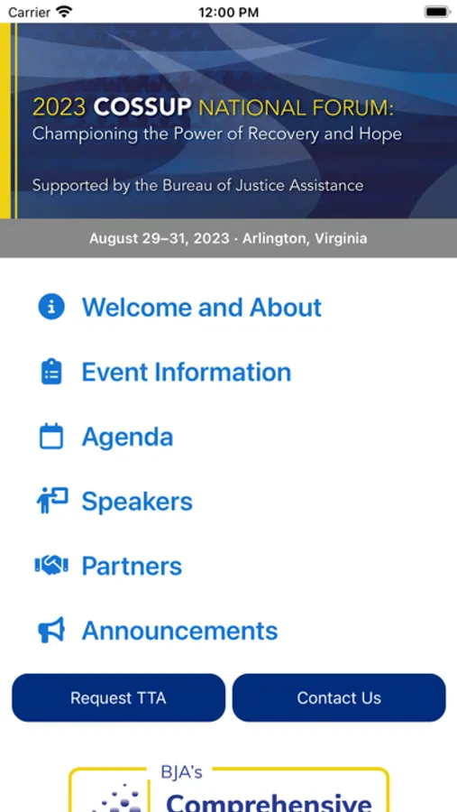 This mobile application is funded through a grant from the Bureau of Justice Assistance (BJA), Office of Justice Programs, U.S. Department of Justice, and is designed to maximize attendees’ COSSUP National Forum experiences and learning opportunities.